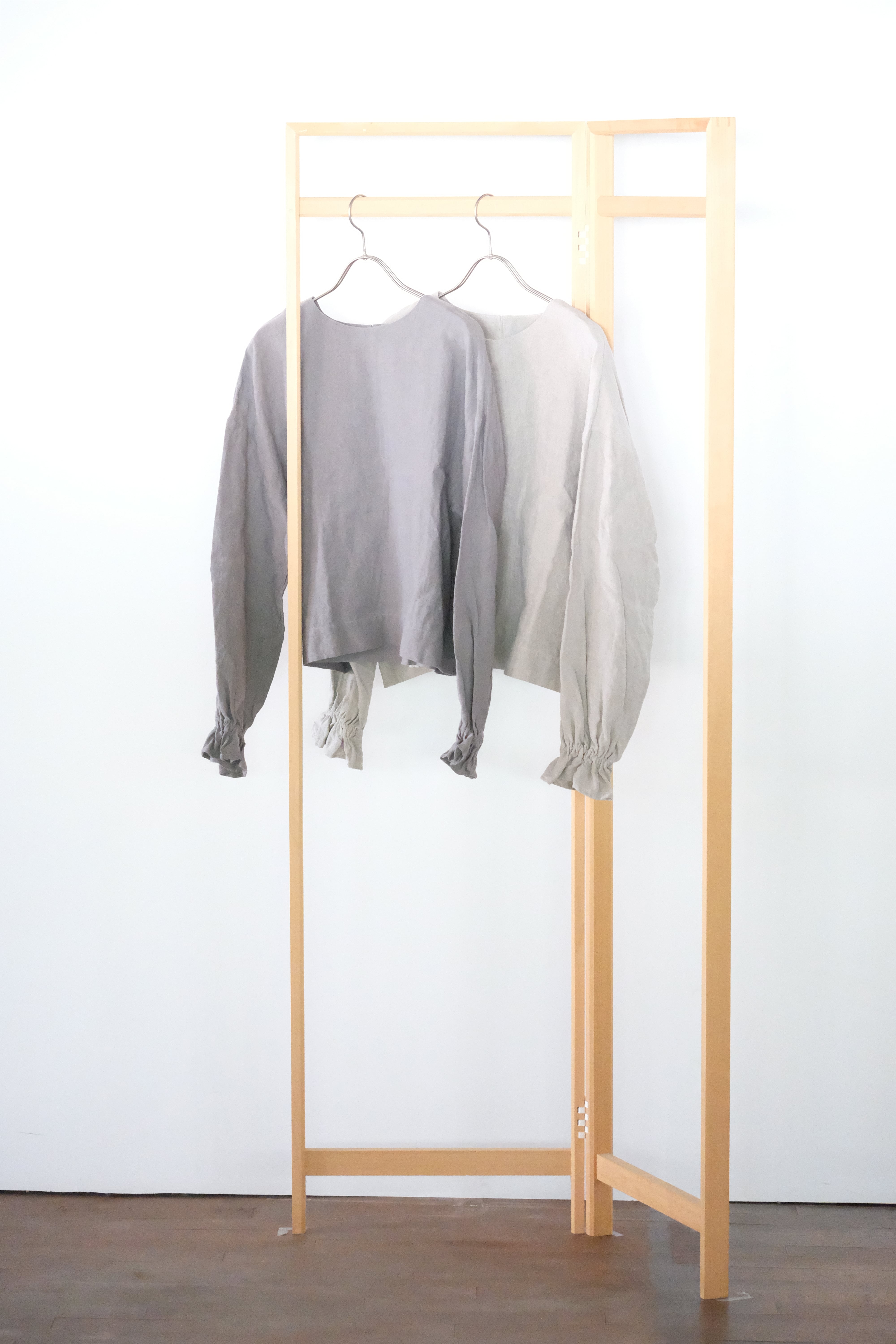 人気の高いリネンのうしろ一つボタンシャツの、長袖のリクエストにお応えした新商品が誕生。袖口フリルが可愛い長袖ブラウスのご紹介です。襟ぐりはうしろ一つボタンシャツと同じ、上品で狭めな丸首仕様です。また、袖ぐりや身幅はヤンマ仕様。小柄な方でも大柄な方でも不思議と体型も年齢も選ばず着ていただけるデザインになっています。