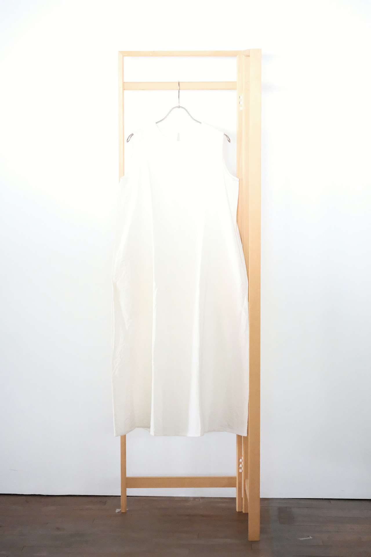 夏にさらっと着たい、サンドレスを作りました。襟ぐりは上品な丸首です。一枚で着るのももちろん、冬にタートルや長袖シャツと合わせても可愛いです。袖ぐりや身幅はいつものヤンマ仕様なので小柄な方でも大柄な方でも体型も年齢も選ばず着ていただけるデザインになっています。腕を出すのが、、という方や、夏でも長袖しか着ない、という方にもおすすめです。ノースリーブなのでカーディガンを羽織ってもすっきり着こなせます!