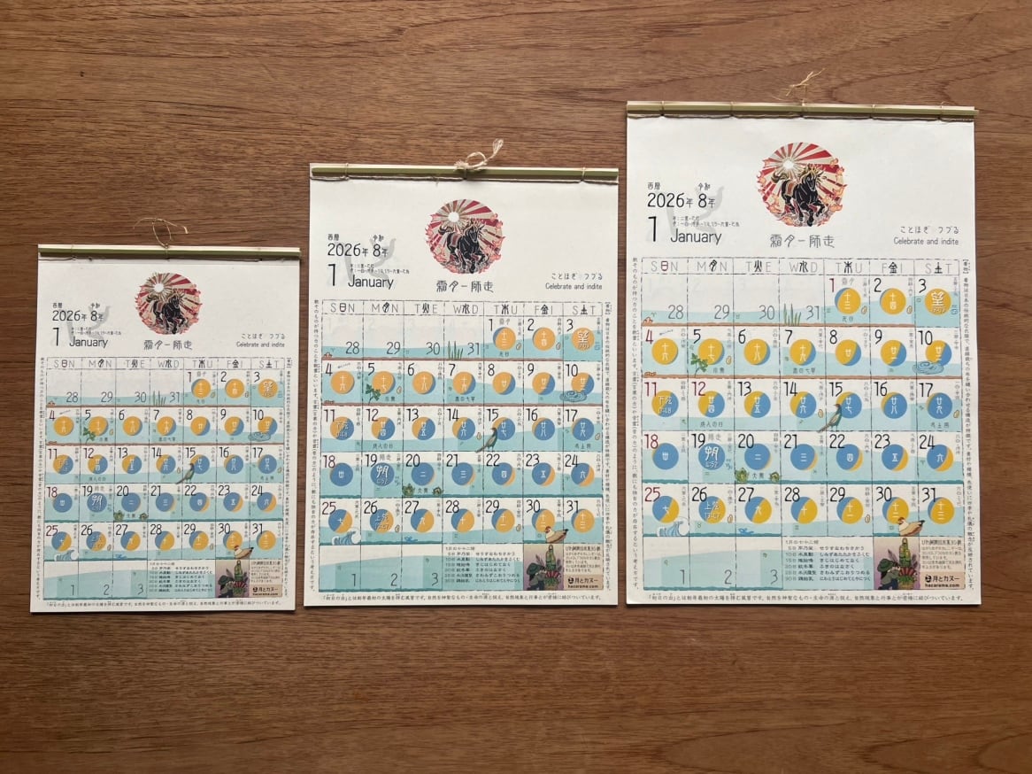 令和六年版からご紹介している、月とカヌーさんの「はからめ月のカレンダー」が登場です。
