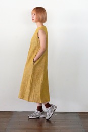 夏にさらっと着たい、サンドレスを作りました。襟ぐりは上品な丸首です。一枚で着るのももちろん、冬にタートルや長袖シャツと合わせても可愛いです。袖ぐりや身幅はいつものヤンマ仕様なので小柄な方でも大柄な方でも体型も年齢も選ばず着ていただけるデザインになっています。腕を出すのが、、という方や、夏でも長袖しか着ない、という方にもおすすめです。ノースリーブなのでカーディガンを羽織ってもすっきり着こなせます!